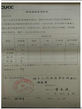 2、致力提升客戶滿意度。為更客觀評(píng)價(jià)公司為客戶提供的的產(chǎn)品和服務(wù)水平,發(fā)現(xiàn)自身存在的不足,推動(dòng)業(yè)務(wù)改善,公司采取各種措施提升客戶滿意度。經(jīng)調(diào)查了解,與當(dāng)?shù)仄渌嗥髽I(yè)相比,我司在客戶中有良好的口碑。